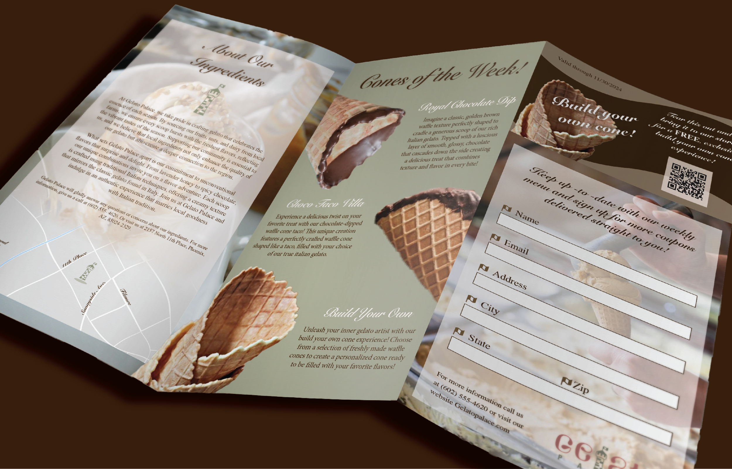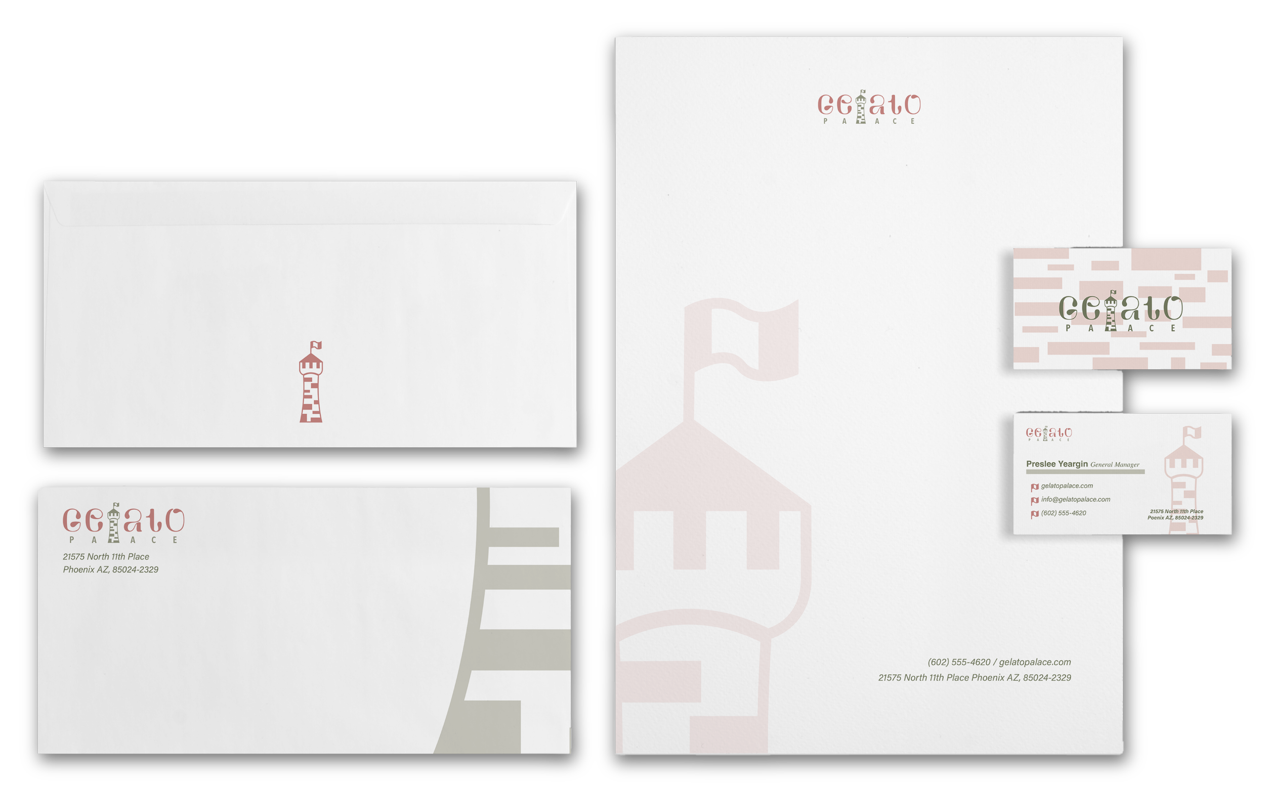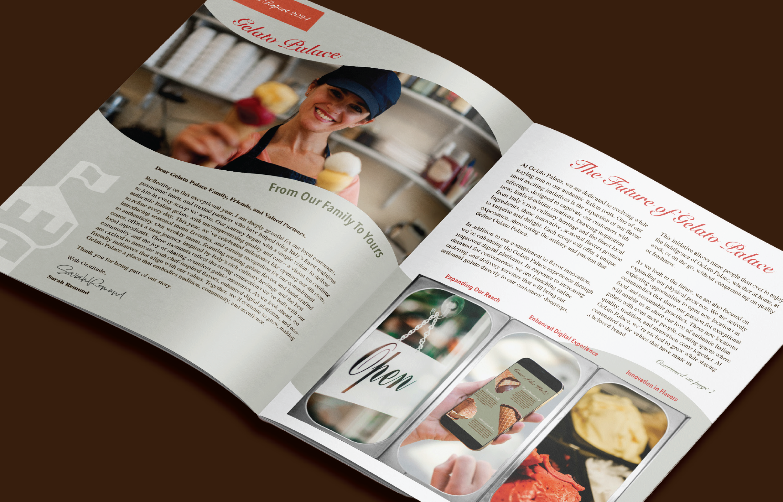 Gelato Palace is designed as a cohesive brand experience, balancing tradition and modernity through thoughtful typography, color, and application.